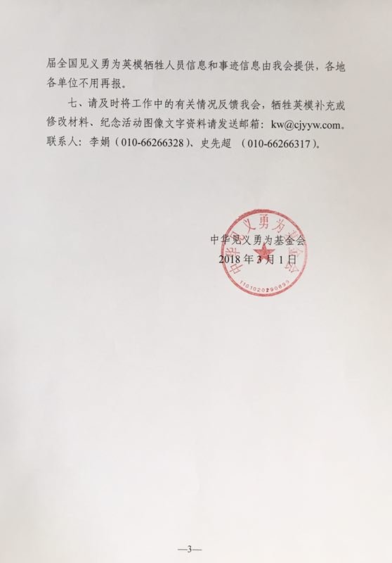 关于开展2018年清明时节全社会共同向因见义勇为壮烈牺牲的英模致敬活动的通知