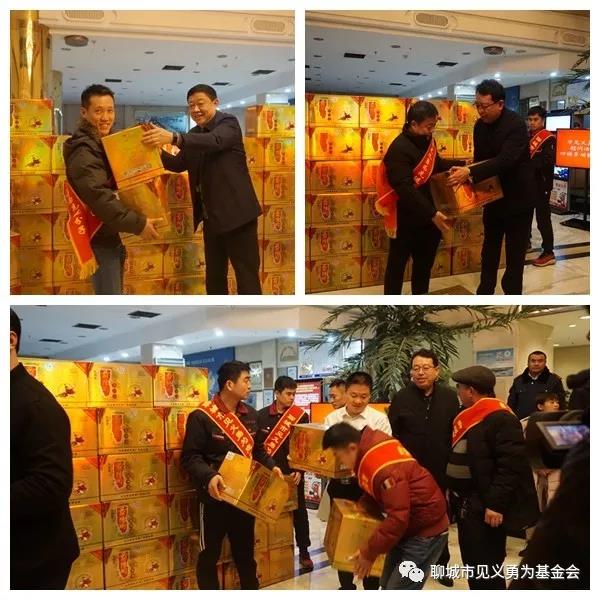 “崇尚英雄才会产生英雄,争做英雄才能英雄辈出”。自2018年8月聊城市见义勇为基金会第二届理事会换届以来,坚持以习近平新时代中国特色社会主义思想为指导,大力加强和改进见义勇为工作,一个“讴歌英雄、学习英雄、崇尚英雄”的热潮正在全市兴起,涌现出冒着熊熊大火冲入屋内救出九旬老人的冠县清泉街道办事处沙庄村村民沙红博,与窃贼英勇搏斗抓获并扭送公安机关的聊城职业技术学院学生李祚庥, 跳入冰冷的河水中救出落水司机的阳谷县阿城镇柴楼村党支部书记徐纪周,路遇轻生女及时伸出援手相救的山东天泰集团职工周承承等一大批见义勇为英雄模范。一批有社会责任感的企业积极参与到见义勇为事业中来,山东景阳冈酒厂有限公司、聊城美年大健康体检中心等爱心企业纷纷慷慨解囊,主动捐款捐物。会上,市见义勇为基金会和景阳冈酒厂有限公司向2018年度全市见义勇为模范、先进群体和先进分子;2019年度全市见义勇为模范、先进群体、先进分子和先进工作者每人赠送特制英雄酒两箱。美年大健康体检中心向2019年度全市见义勇为模范、先进群体和先进分子每人赠送价值2000元的体检卡一张,每位受表彰者还领到了省见义勇为基金会赠送的学习、娱乐光盘及市见义勇为基金会邀请市书法家协会书法家精心书写的春联。