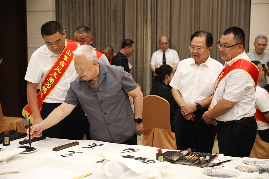 仪式上,省见义勇为基金会为爱心企业国井集团颁发捐赠奖牌及证书,并为15名淄博市见义勇为模范发放慰问金。国井集团负责人、淄博市见义勇为模范代表分别作了致辞和发言。省内外知名书画家现场书画,并向爱心企业和受到慰问的见义勇为模范赠送慰问书画作品。