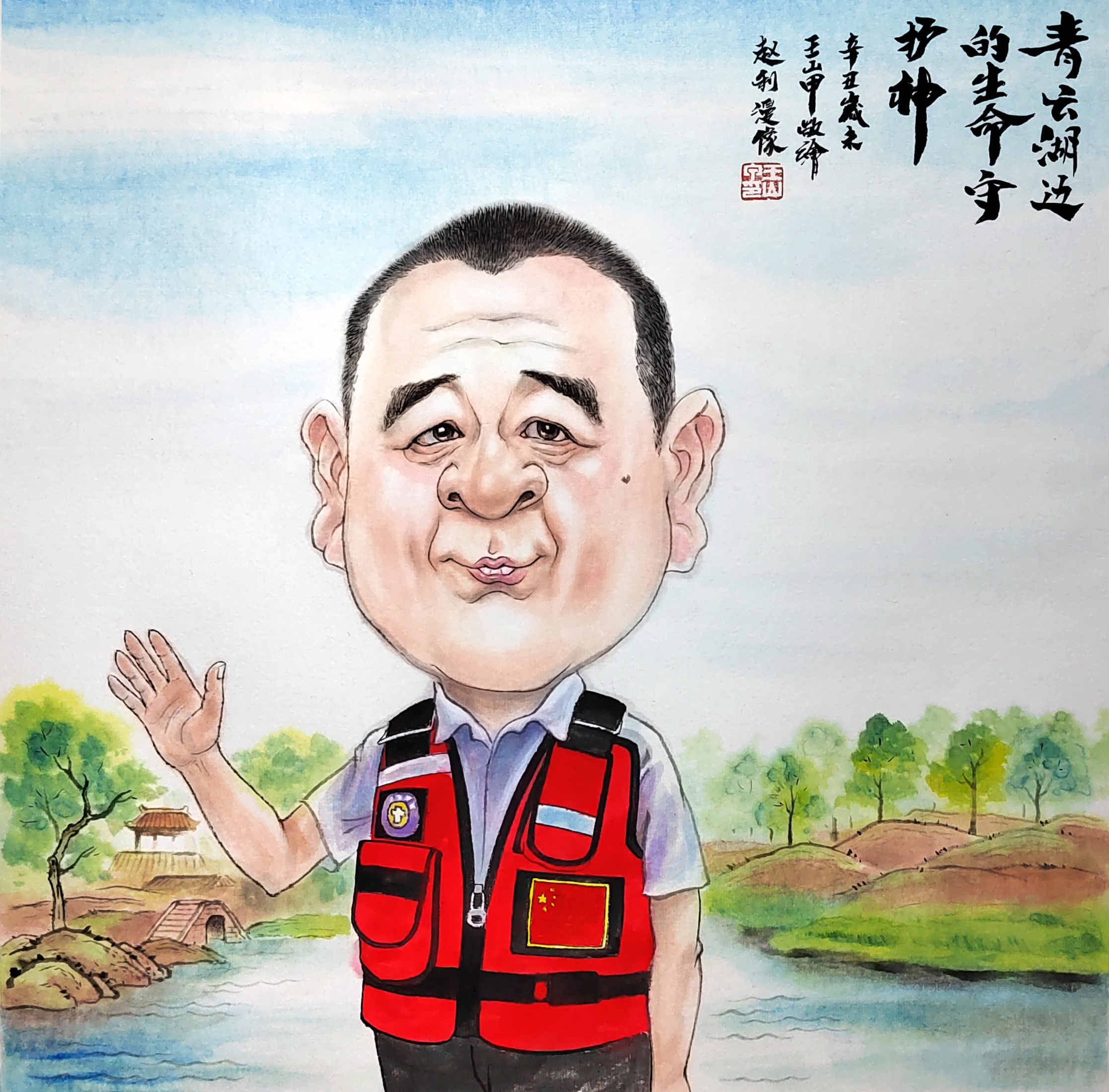 王山甲 《赵利漫像青云湖边的生命守护神》