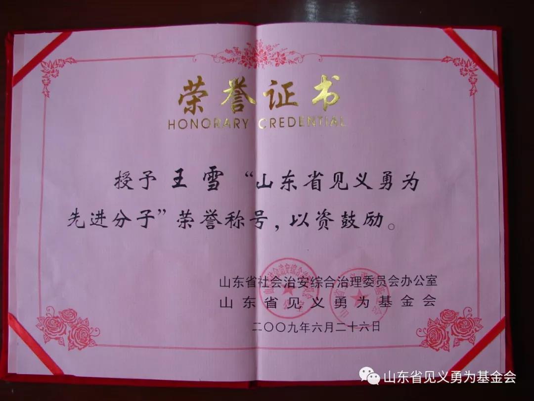 2009年6月26日,被省综治委、省见义勇为基金会授予“山东省见义勇为先进分子”荣誉称号;2009年6月18日,被省政府追授为“烈士”。