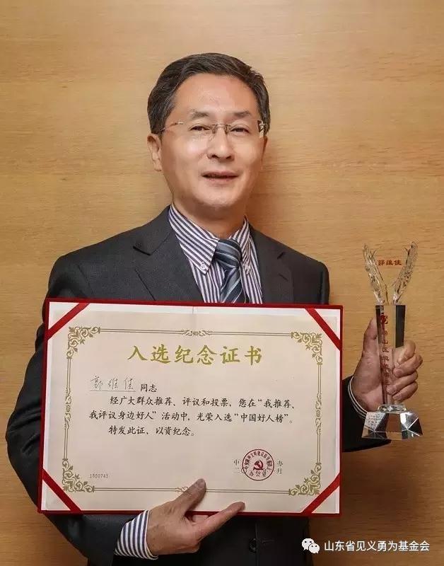 2016年3月25日,郭维佳被省综治办、省见义勇为基金会授予“山东省见义勇为模范”荣誉称号。