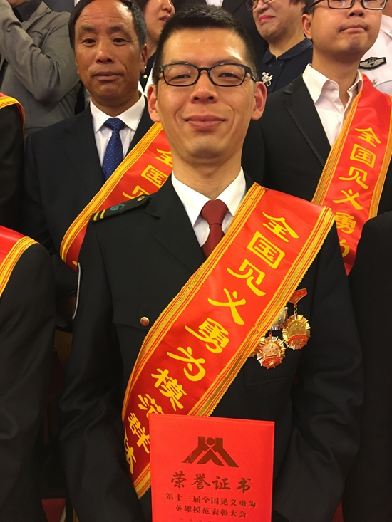 4月24日,第十三届全国见义勇为英雄模范表彰大会在北京人民大会堂召开。会前,中央政治局委员、政法委书记孟建柱接见了全国见义勇为英雄模范代表。国务委员、公安部部长郭声琨等领导为获奖代表颁发了奖章和证书;中华见义勇为基金会理事长贾春旺及中央八部委等领导出席会议。我省张波、宋彦峤、禚杰荣获“全国见义勇为模范”荣誉称号。