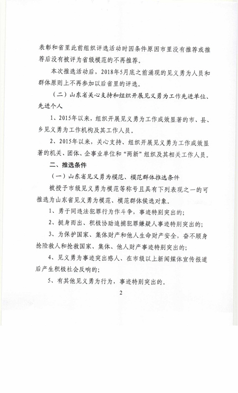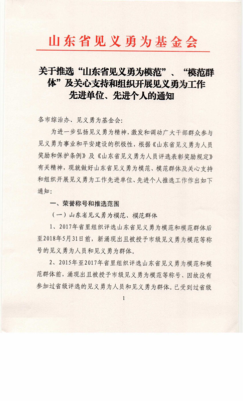 关于推选“山东省见义勇为模范”、“模范群体”及关心支持和组织开展见义勇为工作先进单位、先进个人的通知