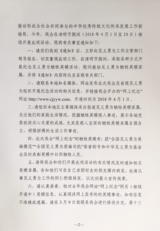 关于开展2018年清明时节全社会共同向因见义勇为壮烈牺牲的英模致敬活动的通知