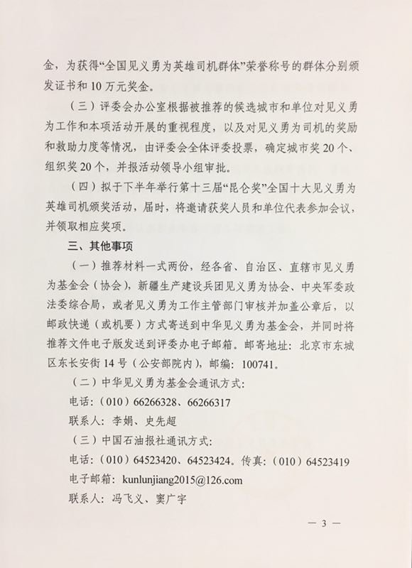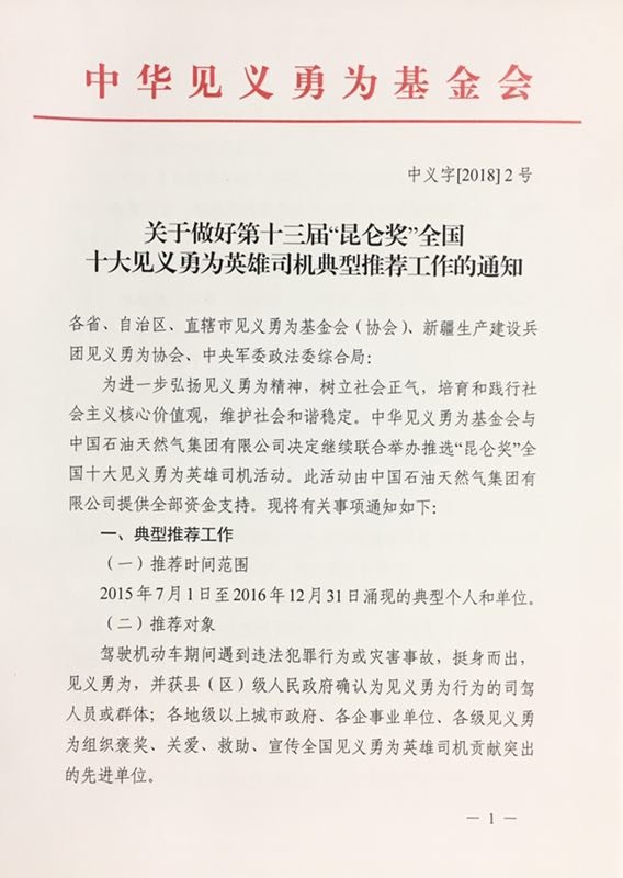 关于做好第十三届“昆仑奖”全国十大见义勇为英雄司机典型推荐工作的通知
