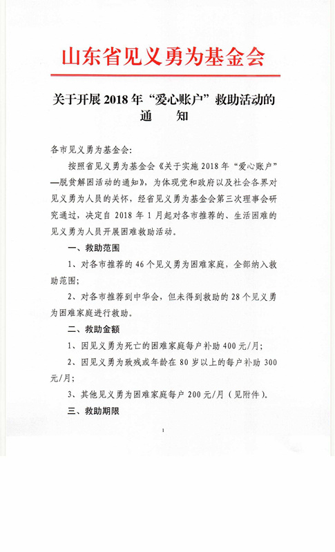 关于开展2018年“爱心账户”救助活动的通知