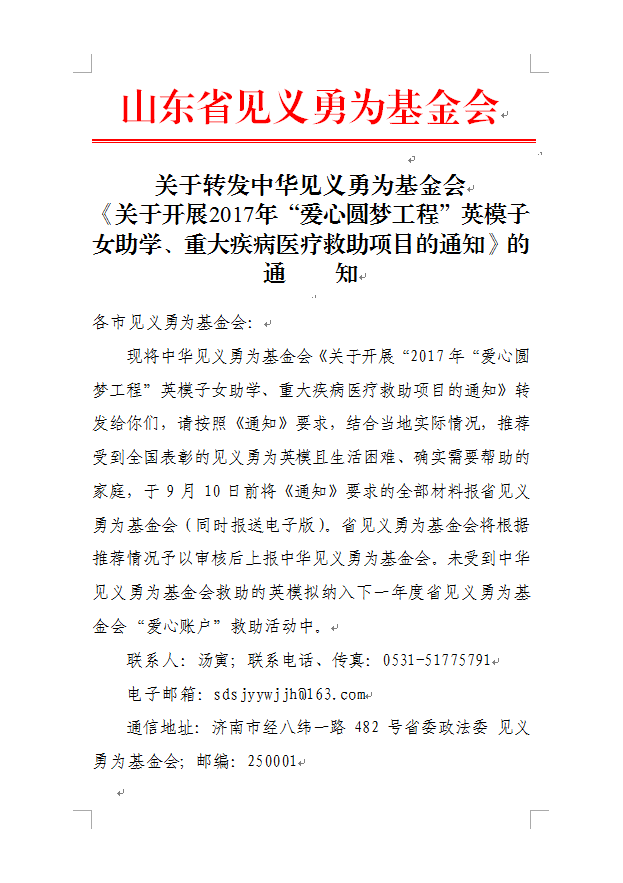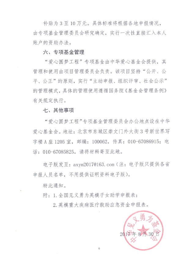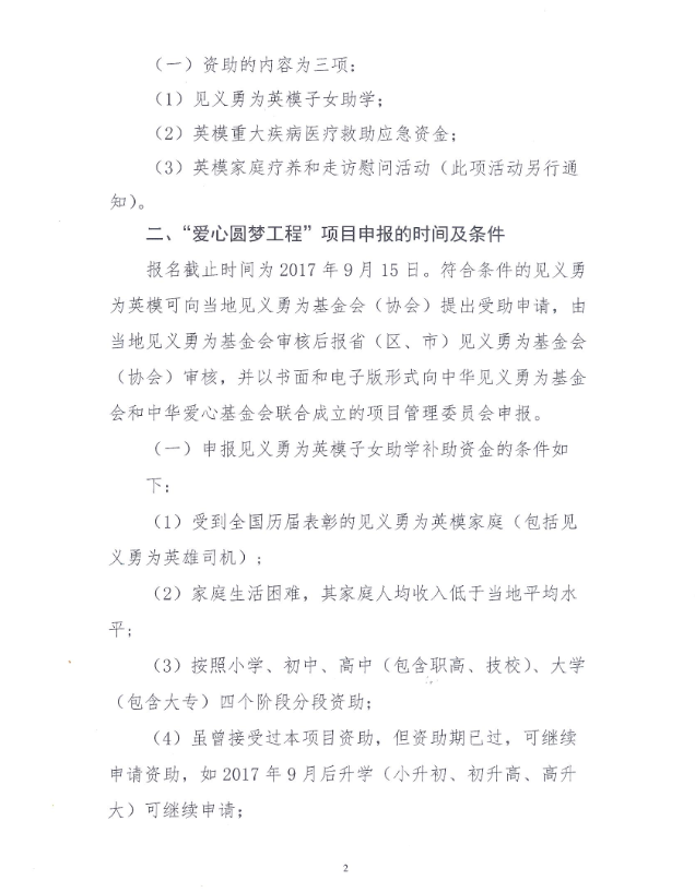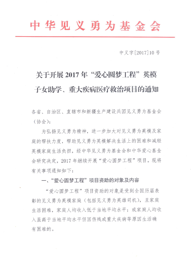 关于转发中华见义勇为基金会《关于开展2017年“爱心圆梦工程”英模子女助学、重大疾病医疗救助项目的通知》的通知