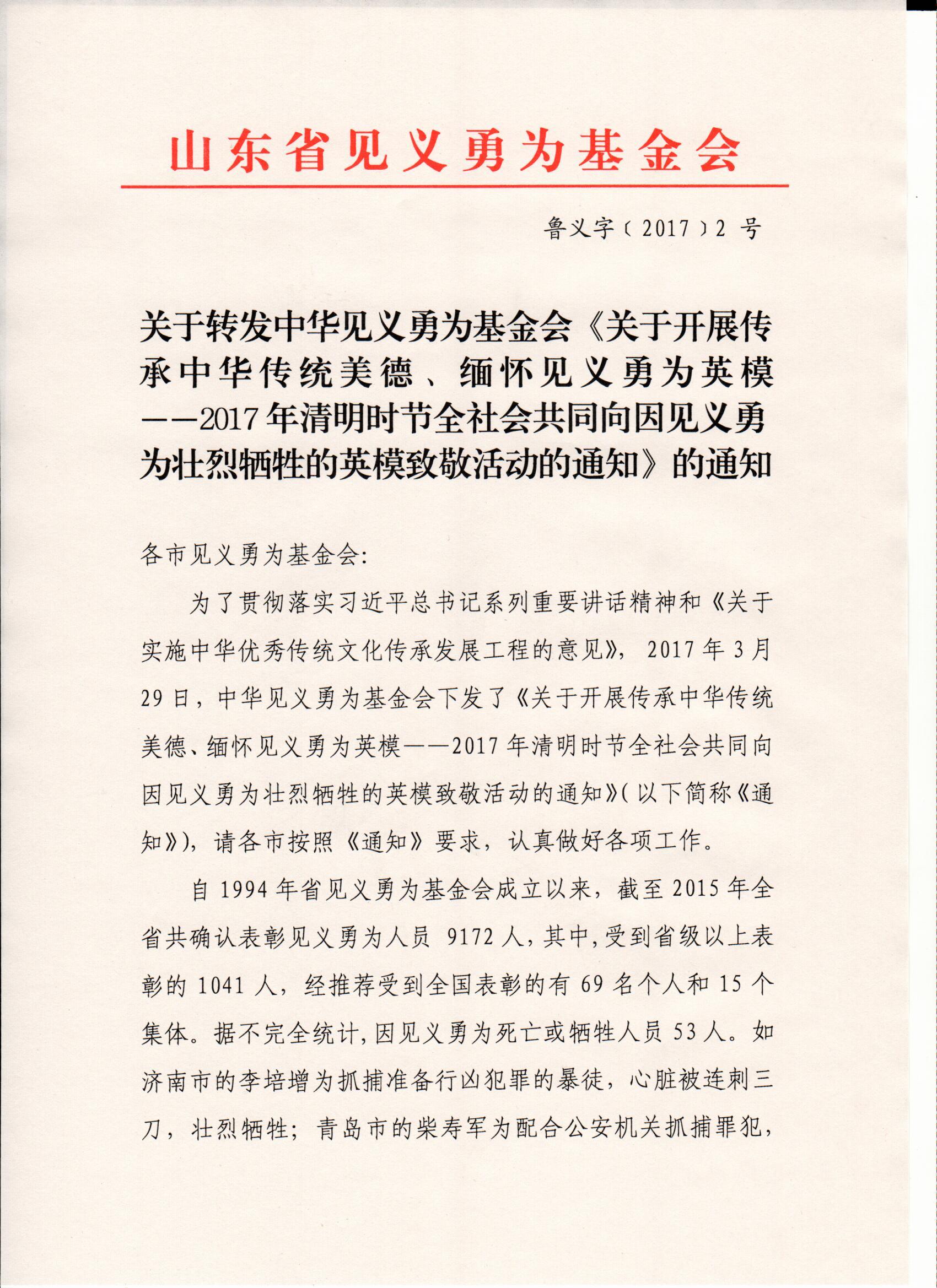 关于转发中华见义勇为基金会《关于开展传承中华传统美德、缅怀见义勇为英模――2017年清明时节全社会共同向因见义勇为壮烈牺牲的英模致敬活动的通知》的通知