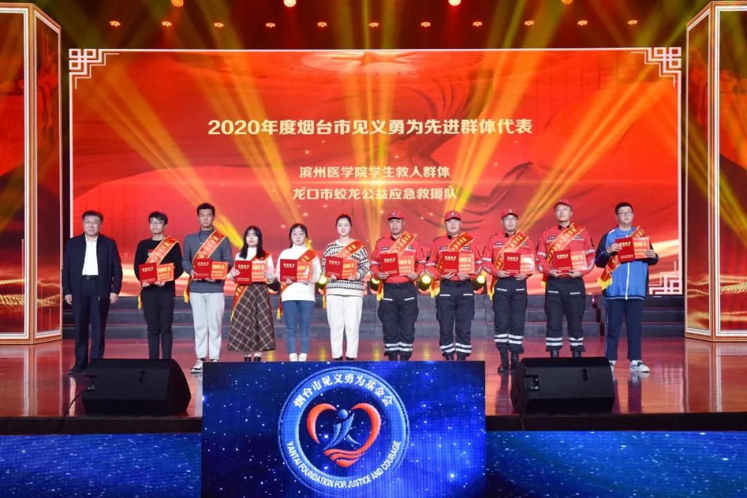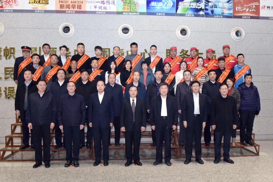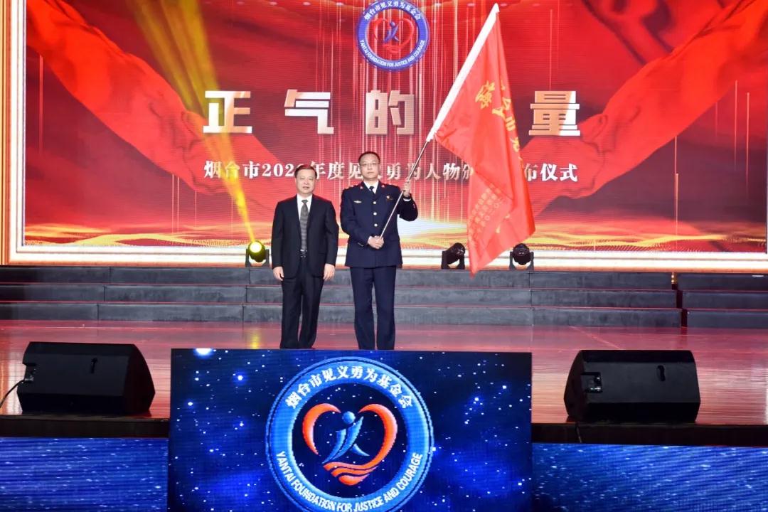 在仪式现场,为烟台市退役军人事务局授予“烟台市见义勇为退役军人工作站”牌匾,为烟台海事局授予“烟台市见义勇为海上志愿救护总队”队旗,见义勇为志愿者和先进代表们向全社会宣誓,做到见义勇为、见义敢为、见义智为、见义众为,共建平安烟台、正气烟台。