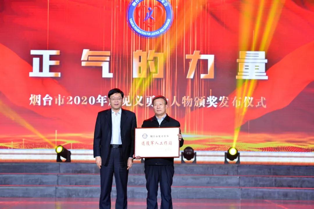 市人民检察院院长邵汝卿为烟台市退役军人事务局颁授“烟台市见义勇为退役军人工作站”牌匾