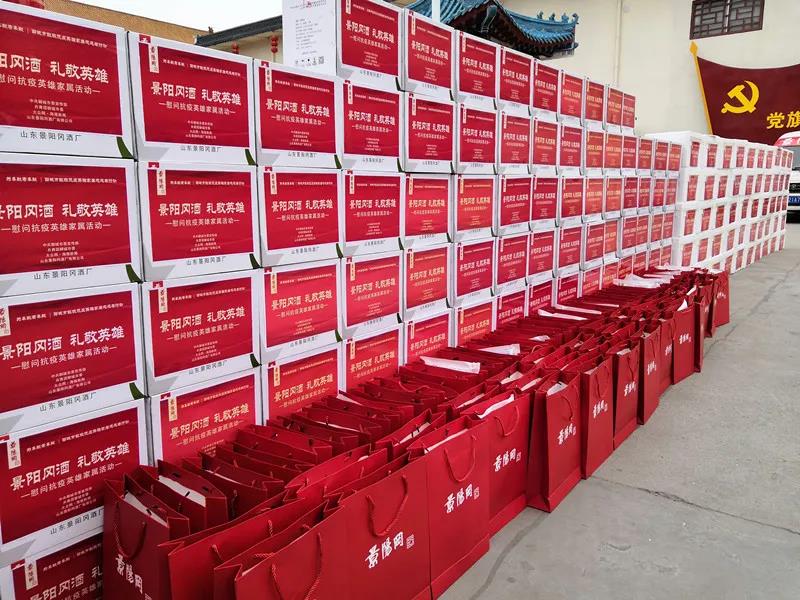 景阳冈酒,礼敬英雄。为支持见义勇为事业,关爱见义勇为英雄,去年,山东景阳冈酒厂有限公司向聊城市见义勇为基金会捐赠5万元现金和价值25万元的“英雄酒”,用于奖励见义勇为英模,被聊城市委政法委、聊城市见义勇为基金会评为“见义勇为爱心企业”。新冠疫情爆发后,景阳冈酒业再献爱心,在董事长、市见义勇为基金会名誉理事赵传新带领下,开展了慰问援鄂医护人员家属活动。 2月28日,景阳冈酒业派出八辆慰问车,统一调度奔赴聊城八县市区,把蔬菜、口罩、75度巴铁原浆等慰问物资送到聊城市86位援鄂医务人员家中,用实际行动致敬英雄、致敬英雄家属。