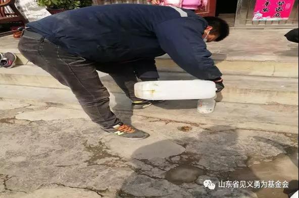 从2月1日起,他在做好自我防控工作的同时,每天坚持到到公司进行防疫工作,每天对重点部位进行2次消杀。由于疫情严重,公司的酒精、84消毒液等消毒物资不足,公司联系到山东大明消毒科技有限公司有消毒液供应。赵聪聪便主动要求驾车到山东大明消毒液科技有限公司拉来3吨消毒液。拉回消毒液之后,他不顾严寒和饥饿,马不停蹄,连续工作十四个小时,把3吨消毒液分装到塑料桶里,亲自送到全厂30多名职工和孤寡老人家中,细心的交代他们怎么使用,怎么防护。