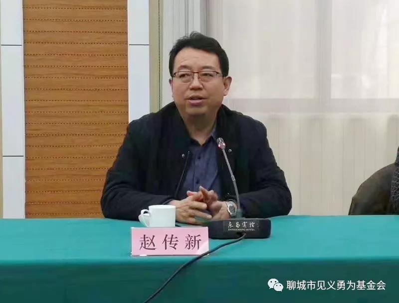 市见义勇为基金会特邀理事、山东景阳冈酒厂有限公司董事长赵传新致辞。