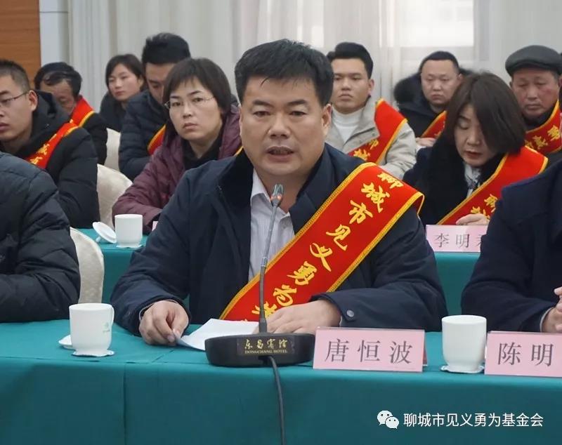 全市见义勇为先进分子、阳谷县博济桥街道办事处主任唐恒波发言。