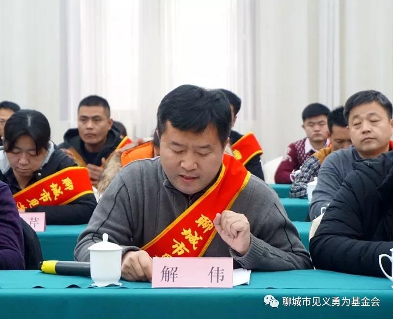 全市见义勇为先进工作者、东昌府区委政法委基层社会治理股股长解伟发言。