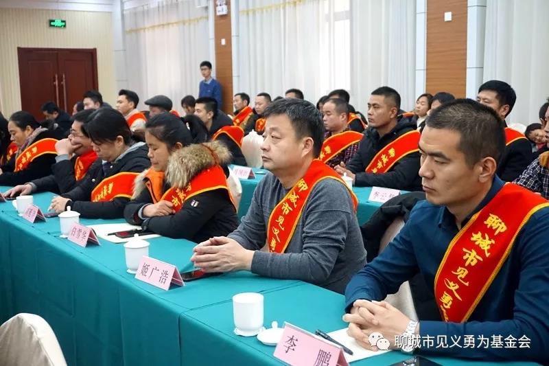 “崇尚英雄才会产生英雄,争做英雄才能英雄辈出”。自2018年8月聊城市见义勇为基金会第二届理事会换届以来,坚持以习近平新时代中国特色社会主义思想为指导,大力加强和改进见义勇为工作,一个“讴歌英雄、学习英雄、崇尚英雄”的热潮正在全市兴起,涌现出冒着熊熊大火冲入屋内救出九旬老人的冠县清泉街道办事处沙庄村村民沙红博,与窃贼英勇搏斗抓获并扭送公安机关的聊城职业技术学院学生李祚庥, 跳入冰冷的河水中救出落水司机的阳谷县阿城镇柴楼村党支部书记徐纪周,路遇轻生女及时伸出援手相救的山东天泰集团职工周承承等一大批见义勇为英雄模范。一批有社会责任感的企业积极参与到见义勇为事业中来,山东景阳冈酒厂有限公司、聊城美年大健康体检中心等爱心企业纷纷慷慨解囊,主动捐款捐物。会上,市见义勇为基金会和景阳冈酒厂有限公司向2018年度全市见义勇为模范、先进群体和先进分子;2019年度全市见义勇为模范、先进群体、先进分子和先进工作者每人赠送特制英雄酒两箱。美年大健康体检中心向2019年度全市见义勇为模范、先进群体和先进分子每人赠送价值2000元的体检卡一张,每位受表彰者还领到了省见义勇为基金会赠送的学习、娱乐光盘及市见义勇为基金会邀请市书法家协会书法家精心书写的春联。
