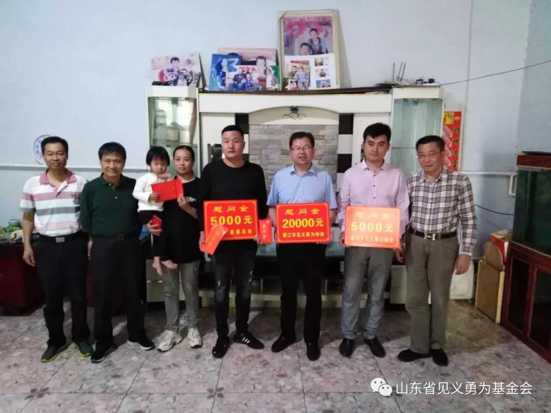 5月13日,福建省泉州市见义勇为协会副会长吴良建、晋江市见义勇为协会会长陈永聪、晋江市见义勇为协会秘书长郑文约一行到临沂市兰陵县见义勇为者苏保营家中走访慰问,并送去慰问金共计30000元及证书、牌匾,兰陵县委政法委副书记李江涛及县委政法委、尚岩镇有关人员陪同。