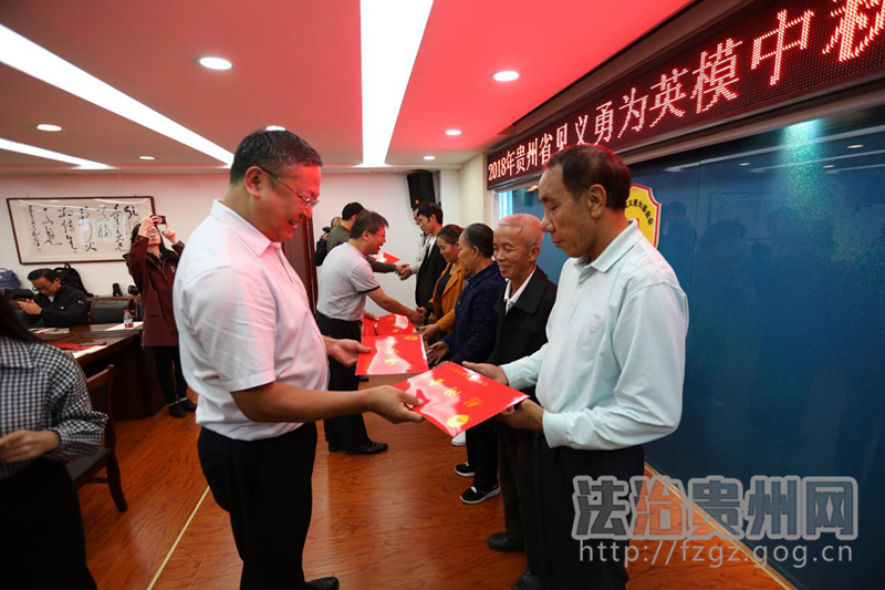 会议由贵州省见义勇为基金会办公室主任肖读金主持,并邀请省综治办四处副处长方渝、省见义勇为基金会办公室副主任陈天才对见义勇为英模们进行慰问,每人发放慰问金3000元。