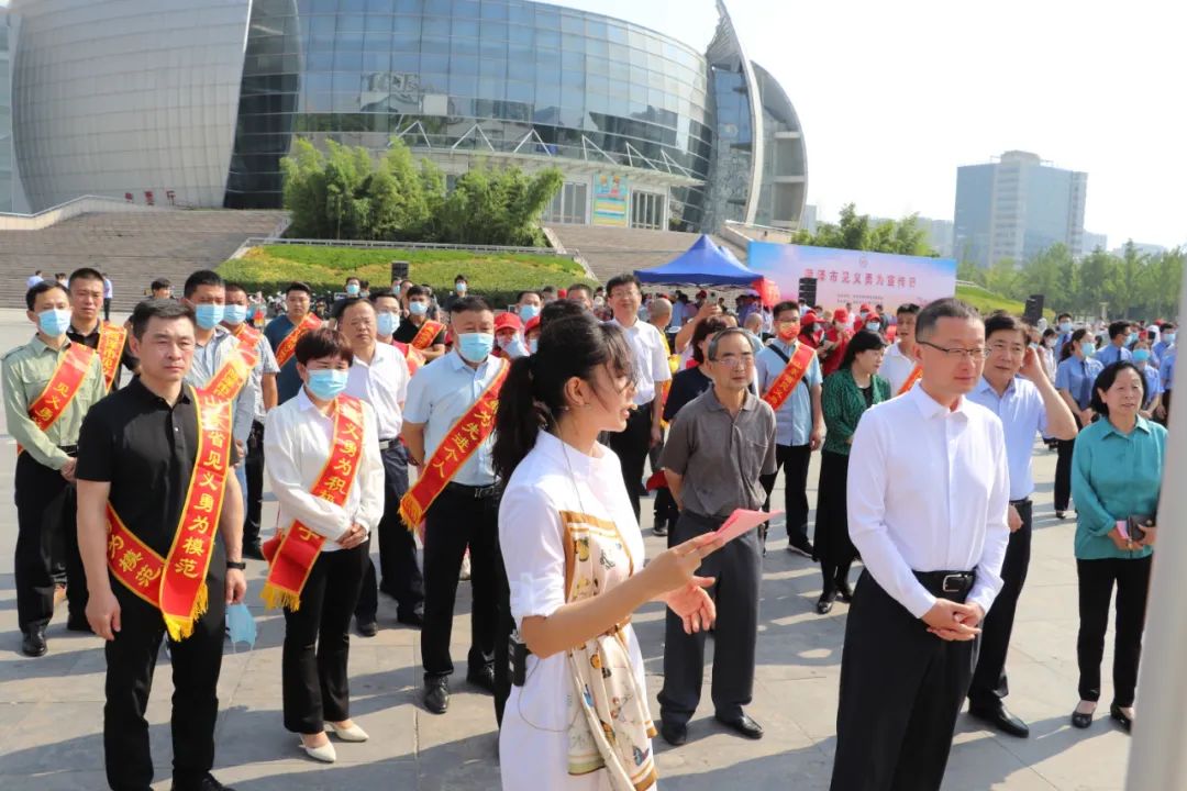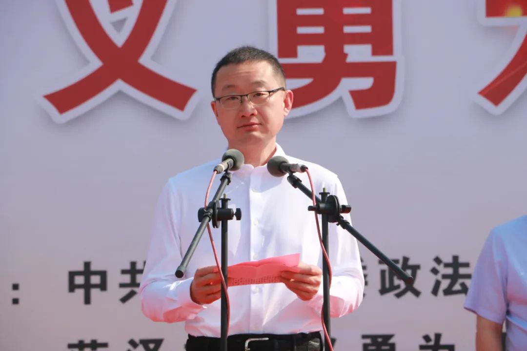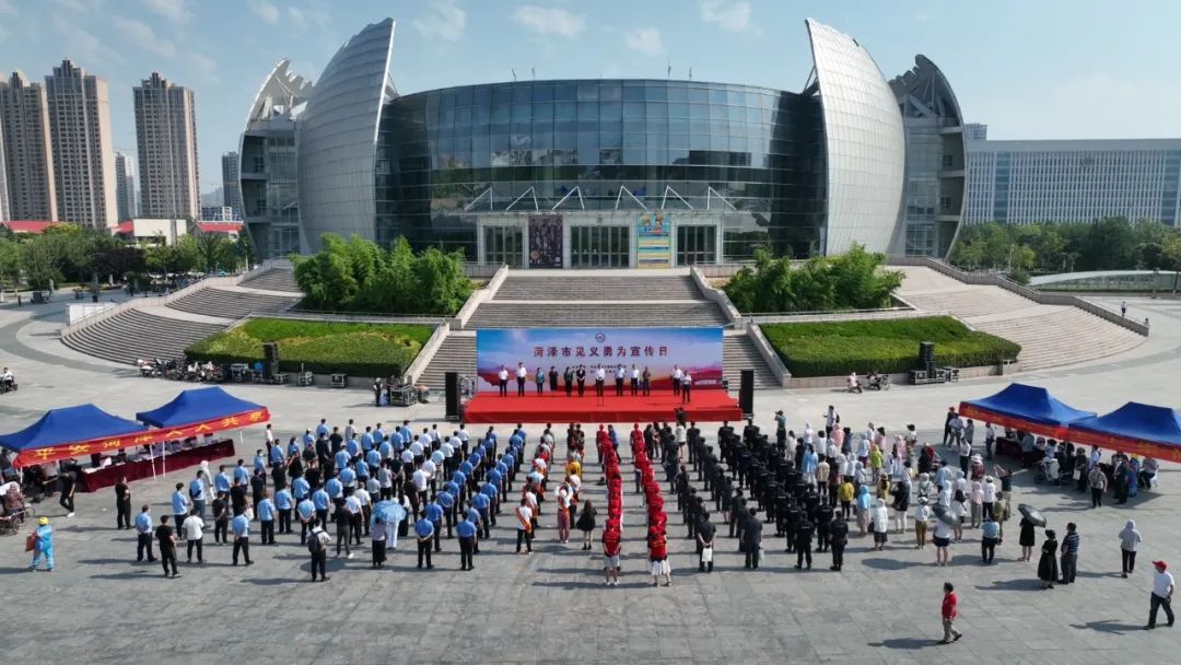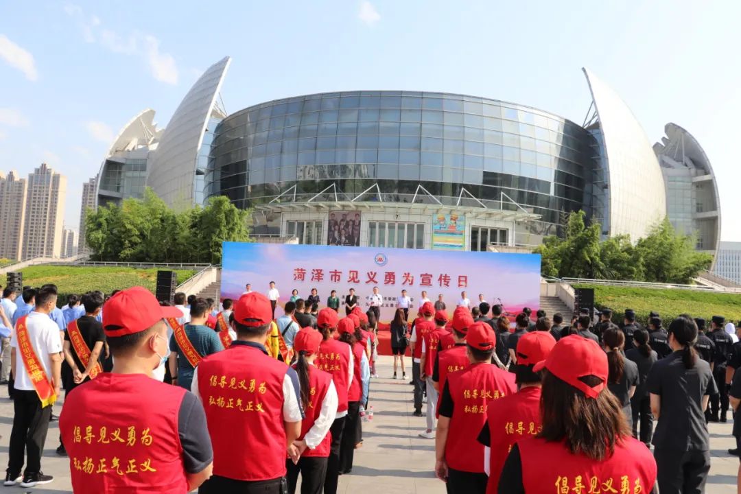 2022年6月17日,为深入学习宣传、贯彻落实全国、全省见义勇为工作会议精神,大力倡导见义勇为精神,在全社会弘扬社会新风尚,汇聚正能量,菏泽市在菏泽大剧院牡丹广场举办全市“见义勇为宣传日”启动仪式。市委常委、政法委书记张磊出席仪式并讲话,市人大常委会副主任孔祥岩,市政府副市长、市公安局局长刘连栋,市法院院长孙淑芳,市检察院检察长王新建,市政协副主席肖云,市政协原主席、市见义勇为基金会第一届理事会理事长孔令昌,市政府原副市长、市见义勇为基金会第一届理事会副理事长童彩云,市委政法委副书记杜茂林,市司法局局长赵中华,市委政法委原二级巡视员、市见义勇为基金会第二届理事会副理事长兼秘书长李冠斌出席,市法院、市检察院、市公安局、市司法局相关同志,市见义勇为模范代表,见义勇为志愿服务队代表及群众代表参加仪式。仪式由市委政法委常务副书记陈衍山主持。