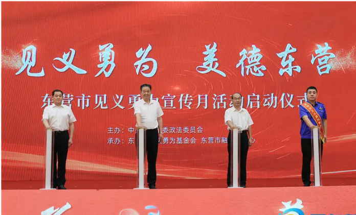 启动仪式现场,发布了2022、2023年度东营市见义勇为模范和模范群体名单并颁奖,发布了东营市见义勇为主题曲《百姓英雄》和LOGO标识。