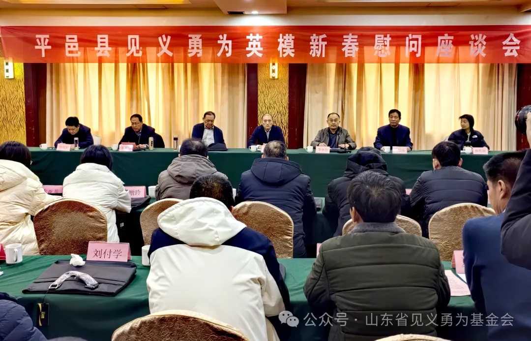 1月30日上午,平邑县见义勇为英模新春慰问座谈会在沂州国际饭店召开,向全县见义勇为英模致以春节的慰问和祝福。平邑县委常委、政法委书记孙峰,平邑县见义勇为协会会长程新安出席座谈会。