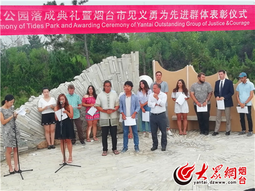 活动现场 烟台环太平洋公园标志性建筑揭幕 见义勇为先进群体 大众网烟台7月28日讯 (记者 蔡云飞 见习记者 邵鹏飞) 28日下午,烟台环太平洋公园落成典礼暨烟台市见义勇为先进群体表彰仪式在烟大东门南侧的烟台环太平洋公园举行,标志着世界第7个“环太平洋公园”正式落户烟台。仪式上,为表彰公园主创团队及烟台东顺海上义务救护队共11名队员勇救落水父子3人的英勇行为,
