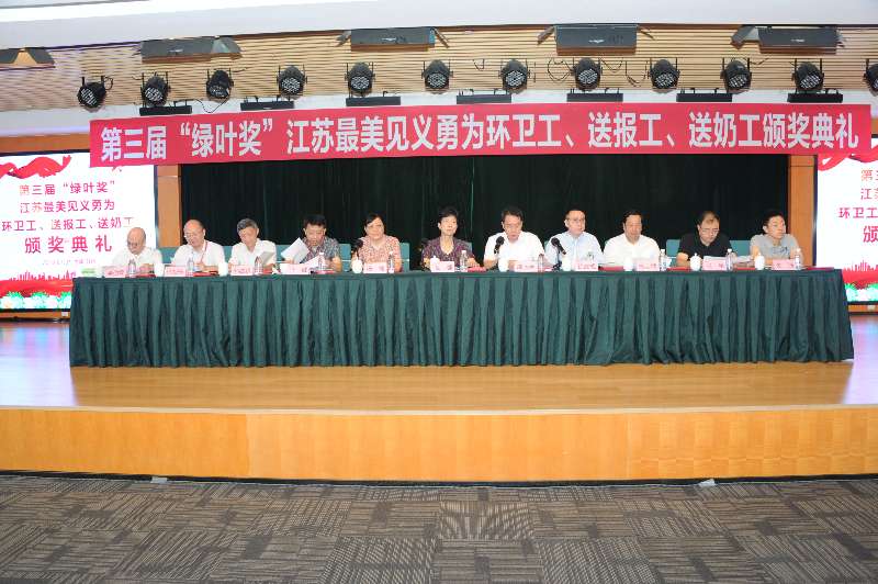 7月31日上午,省见义勇为基金会在苏州举行第三届“绿叶奖”江苏最美见义勇为环卫工(送报工、送奶工)颁奖典礼。此次表彰会上,对去年2月以来全省“三工”群体中涌现出来的14名先进个人、4个先进群体,共26名见义勇为人员进行了集中表彰。省见义勇为基金会理事长弘强出席颁奖典礼并讲话。 弘强理事长指出,全省城镇环卫工、送报工、送奶工,是一支从业人员多、接触社会面广的劳动者队伍,他们从事的