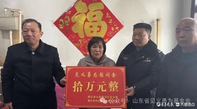 受省市委政法委、见义勇为基金会委托,2024年1月7日,临沂市平邑县委常委、政法委书记孙峰,县见义勇为协会会长程新安一行到保太镇平和庄村看望慰问了荣获“山东省见义勇为模范”的邱夫生,将省见义勇为基金会颁发的表彰奖励金和“山东省见义勇为模范证书”送到邱夫生手中,并代表县委、县政府向其发放了慰问品,带去