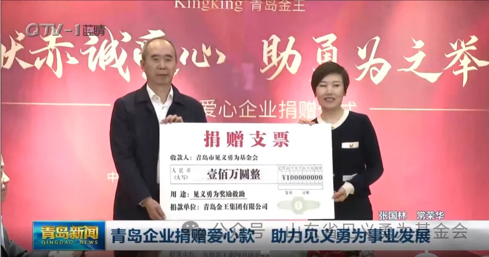 1月12日,青岛市见义勇为基金会在即墨区举行“献赤诚爱心助勇为之举”爱心企业捐赠仪式。青岛金王向基金会捐赠100万元爱心款,助力见义勇为事业发展。近年来,青岛市见义勇为基金会已累计表彰见义勇为模范312人、模范群体43个,发放奖金437.8万元;累计救助生活困难见义勇为人员275人,发放救助金333