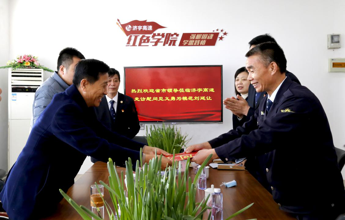 为大力弘扬见义勇为精神,充分体现省见义勇为基金会对见义勇为模范的关怀,2021新春佳节来临之际,1月29日上午,省见义勇为基金会秘书长孙伟、综合协调部主任汤寅、媒体宣传部主任路志通一行3人到省交运集团济宇高速运业公司和振邦保安公司看望慰问了5名济南市见义勇为模范群体代表,并送上慰问金及新春的祝福。济南市见义勇为基金会理事长秦伟明陪同慰问。