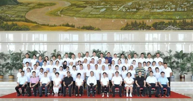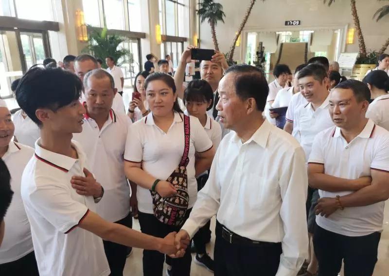 7月27日下午4点30分,中华见义勇为基金会理事长贾春旺在宁夏银川接见全国见义勇为英模及牺牲人员家属并合影留念。