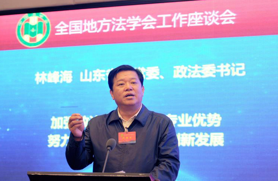 4月26日,全国地方法学会工作座谈会在北京召开,中国法学会会长王乐泉出席会议并讲话。山东省委常委、政法委书记林峰海作了题为《加强政治引领发挥专业优势 努力推动法学会工作创新发展》的典型发言。