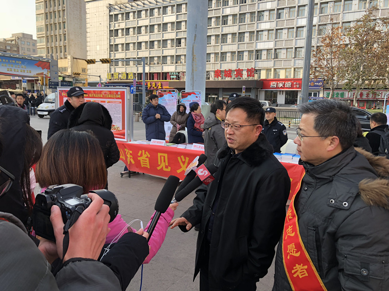 (山东省见义勇为基金会理事长刘丕峰接受媒体采访)