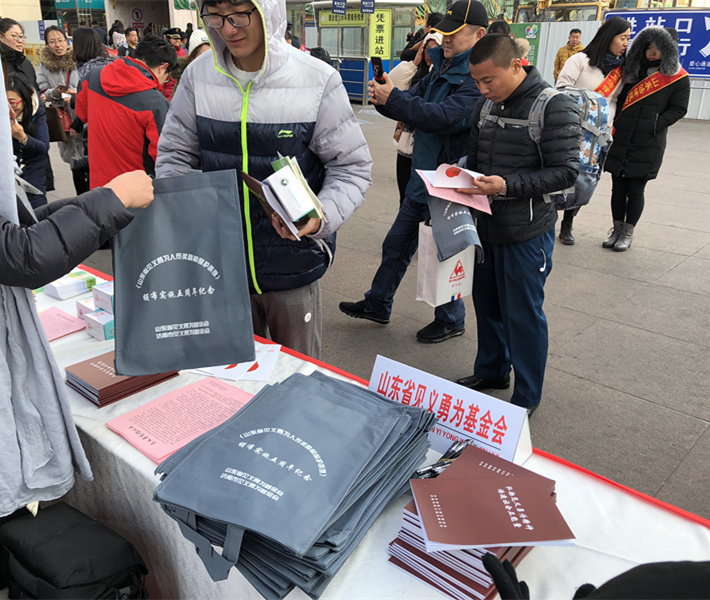 活动现场设置了宣传展板,同时山东省见义勇为基金会与济南市见义勇为基金会工作人员耐心地向来往的群众讲解见义勇为政策规定,宣传见义勇为的社会意义,呼吁群众赞扬见义勇为,支持见义勇为工作。工作人员发放了见义勇为宣传单、见义勇为倡议书、见义勇为笔记本等各类宣传材料。通过宣传让群众充分认识到见义勇为对于平安和谐社会建设意义重大,从而营造“人人赞扬见义勇为、人人支持见义勇为、人人敢于见义勇为”的浓厚社会氛围。