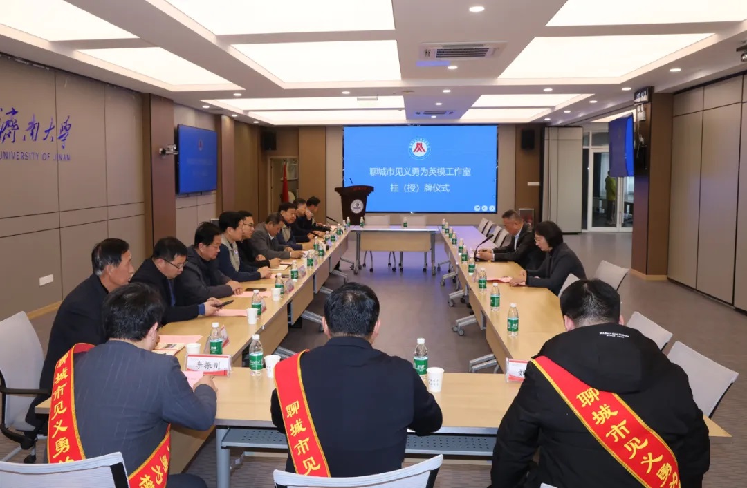 为深入贯彻习近平总书记关于见义勇为的系列重要指示精神,认真落实全国见义勇为工作会议和省见义勇为基金会见义勇为助推黄河流域生态保护和高质量发展交流会部署要求,充分发挥见义勇为模范的示范作用,带动、引领广大群众参与到见义勇为工作中来,推动建立人人有责、人人尽责、人人享有的社会治理共同体。12月31日,聊城市见义勇为基金会在济南大学举行以聊城市高唐县见义勇为模范、济南大学美术与设计学院教授王书峰和聊城市高唐县见义勇为模范、山东省教育书法家协会副秘书长刘金锋,聊城市见义勇为模范、中鑫交通服务集团总裁李振川名字命名的见义勇为英模工作室授牌仪式。省见义勇为基金会副理事长兼秘书长张岳出席仪式并讲话。聊城市见义勇为基金会副理事长兼秘书长孙留功,省见义勇为基金会媒体宣传部主任路志通,济南大学工会主席边健,济南大学美术与设计学院党委书记陈春锋,原高唐县人大常委会主任李丙成,高唐县委常委、副县长刘泰东,高唐县见义勇为协会会长王其平,高唐县委政法委分管日常工作的副书记陈华等领导同志出席仪式。聊城市见义勇为基金会理事长付强主持仪式。