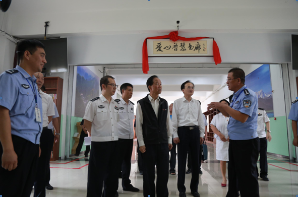 6月25日,最高人民检察院原检察长、中华见义勇为基金会理事长贾春旺一行到保定市看守所调研,并赴雄安新区看望并慰问了见义勇为英雄模范张立健和杨三乐。副省长、省公安厅厅长刘凯陪同调研慰问。 贾春旺(左一)、刘凯(右一)为“爱心启慧书廊”揭牌 贾春旺一行首先来到保定市看守所,为“爱心启慧书廊”揭牌。该书廊是“公安监所爱心图书室”项目,中华爱心基金会捐赠了一万册图书。贾春旺特别关注被监管人员的思